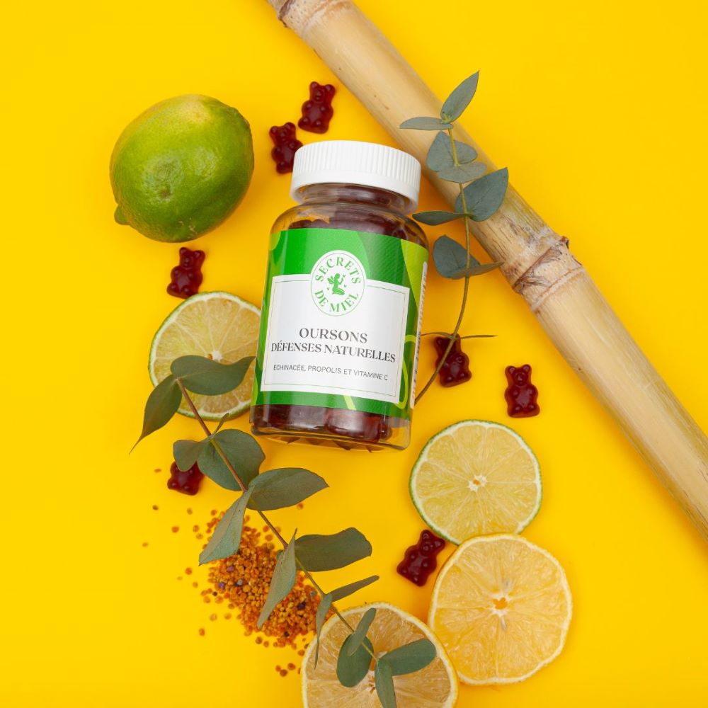 De délicieuses petites gommes molles de Propolis, Echinacée et Vitamine C. La Vitamine C contribue à maintenir le fonctionnement normal du système immunitaire.