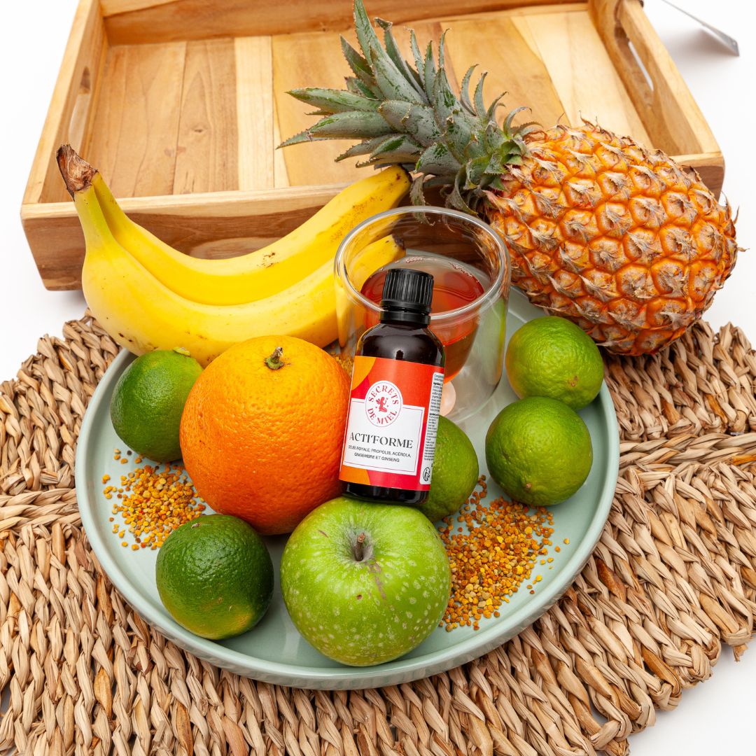 Une formule puissante qui allie une synergie d’actifs revitalisants dont la Vitamine C et le Guarana, qui contribuent à réduire la fatigue. Gelée Royale, Propolis, Citron, Romarin et huiles essentielles viennent compléter cette recette aussi boostante que délicieuse. Idéale en période chargée ou pour retrouver rapidement la forme.