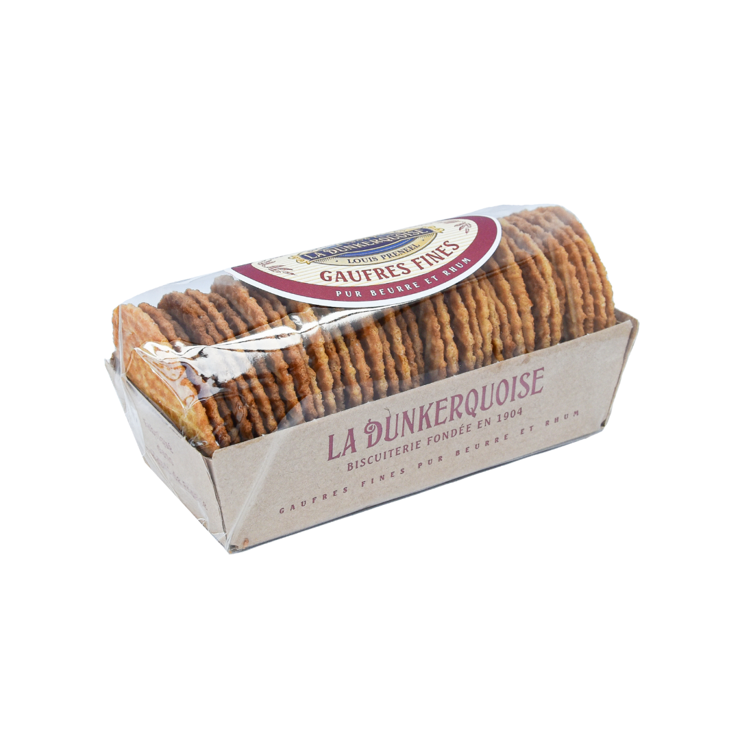 Les Gaufres Fines Flamandes sont des Gaufres Fines Pur Beurre auxquelles on a ajouté un peu de Rhum. Elles vous sont proposées ici en barquette de 280g.