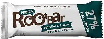 Barre citron spiruline bio de la marque Roo’bar, est une barre énergétique sans gluten issue de l’agriculture biologique.