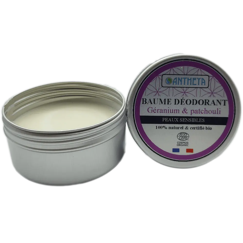 Baume déodorant solide végétal bio – Géranium et patchouli – Antheya – Calais (59)