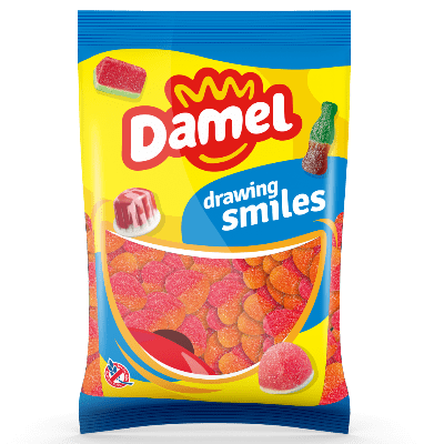 Boite de 12 sachets de bonbons Damel coeurs de peche 80g.