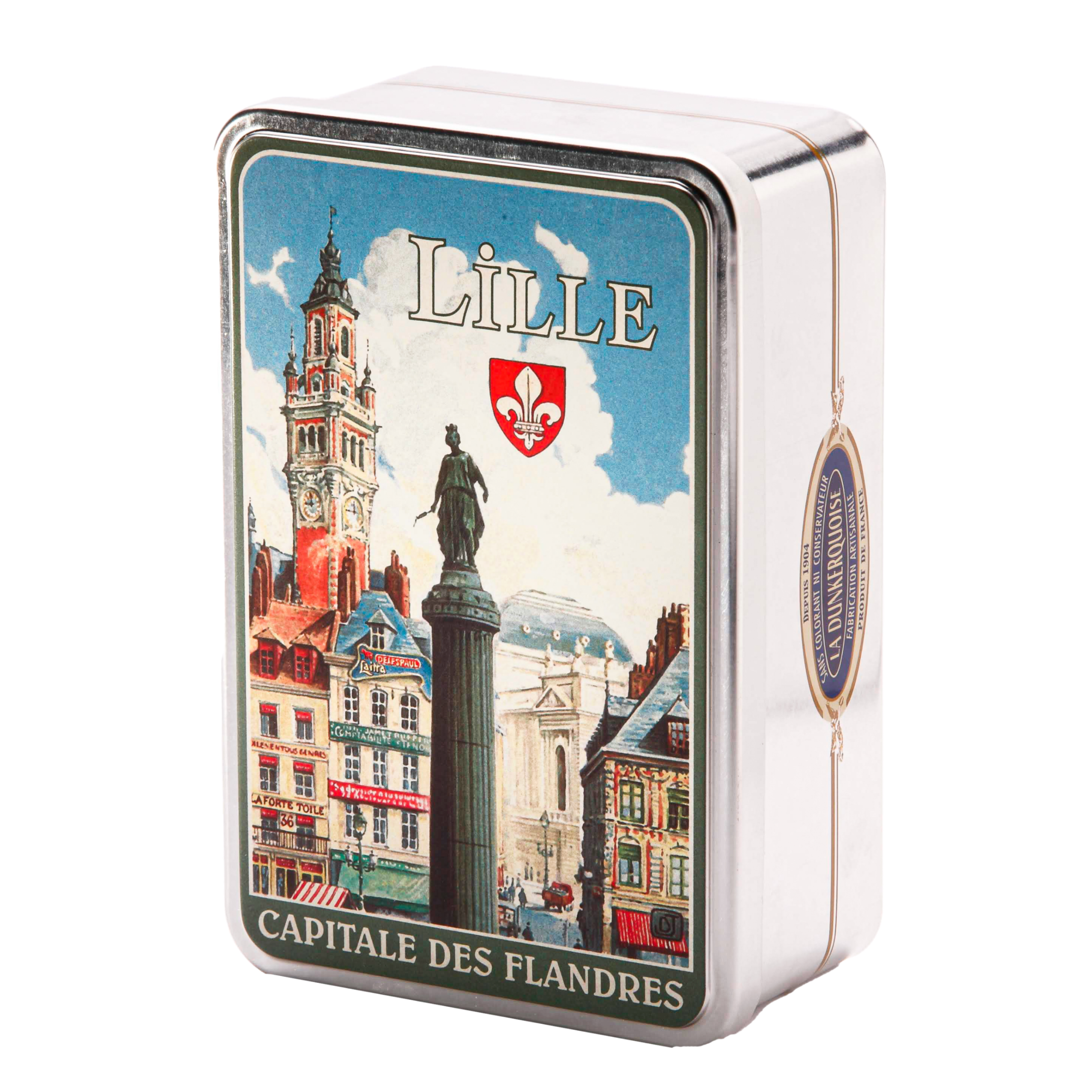 - Jolie boîte métallique aux couleurs de Lille garnie de gaufres fines pur beurre. Une fois vide, cette belle boîte vous sera utile pour ranger votre sucre , vos crayons, etc….