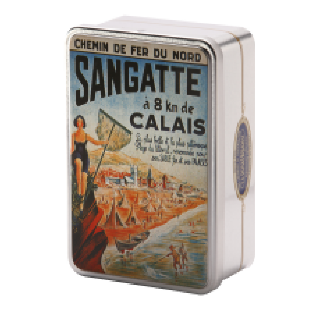 - Jolie boîte métallique aux couleurs de Sangatte garnie de gaufres fines pur beurre. Une fois vide, cette belle boîte vous sera utile pour ranger votre sucre , vos crayons, etc….