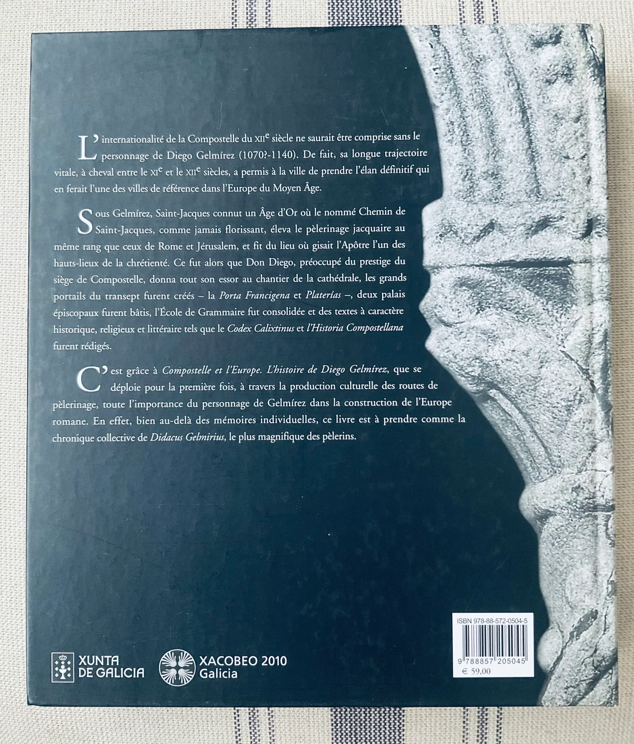L’internationalité de la Compostelle du XIIe siècle ne saurait être comprise sans le personnage de Diego Gelmirez (1070?-1140). De fait, sa longue trajectoire vitale, à cheval entre le XIe et le XIIe siècles, a permis à la ville de prendre l’élan définitif qui en ferait l’une des villes de référence dans l’Europe du Moyen Age. Sous Gelmirez, Saint-Jacques connut un Age d’Or où le nommé Chemin de Saint-Jacques, comme jamais florissant, éleva le pèlerinage jacquaire au même rang que ceux de Rome et Jérusalem, et fit du lieu où gisait l’Apôtre l’un des hauts-lieux de la chrétienté. Ce fut alors que Don Diego, préoccupé du prestige du siège de Compostelle, donna tout son essor au chantier de la cathédrale, les grands portails du transept furent créés – la Porta Francigena et Platerias -, deux palais épiscopaux furent bâtis, l’Ecole de Grammaire fut consolidée et des textes à caractère historique, religieux et littéraire tels que le Codex Calixtinus et l’Historia Compostellana furent rédigés. C’est grâce à Compostelle et l’Europe. L’histoire de Diego Gelmirez, que se déploie pour la première fois, à travers la production culturelle des routes de pèlerinage, toute l’importance du personnage de Gelmirez dans la construction de l’Europe romane. En effet, bien au-delà des mémoires individuelles, ce livre est à prendre comme la chronique collective de Didacus Gelmirius, le plus magnifique des pèlerins.