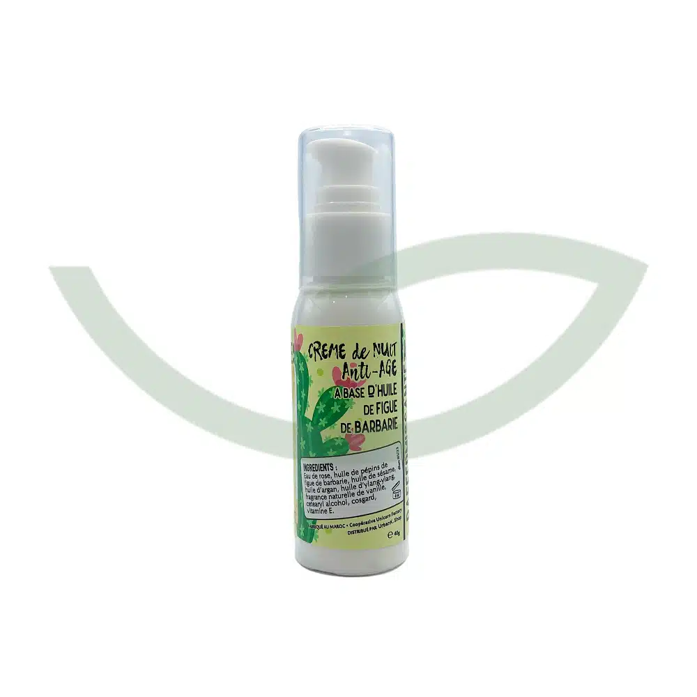La crème de nuit lift intense d’Urbank est à base d’huile de pépins de figue de barbarie, d’huile d’ylang ylang et d’eau de rose. Les deux sont riches en vitamine E.