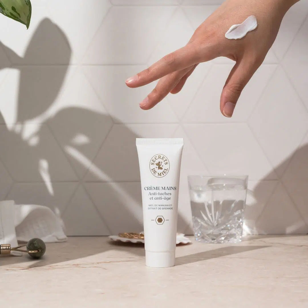 Infusée d’extrait de Grenade, réputée pour illuminer et éclaircir la peau, et enrichie en miel de Manuka, notre crème mains fond délicatement pour une absorption rapide et sans fini collant. Sa texture légère et délicate enveloppe vos mains d’un voile aux senteurs miellées.