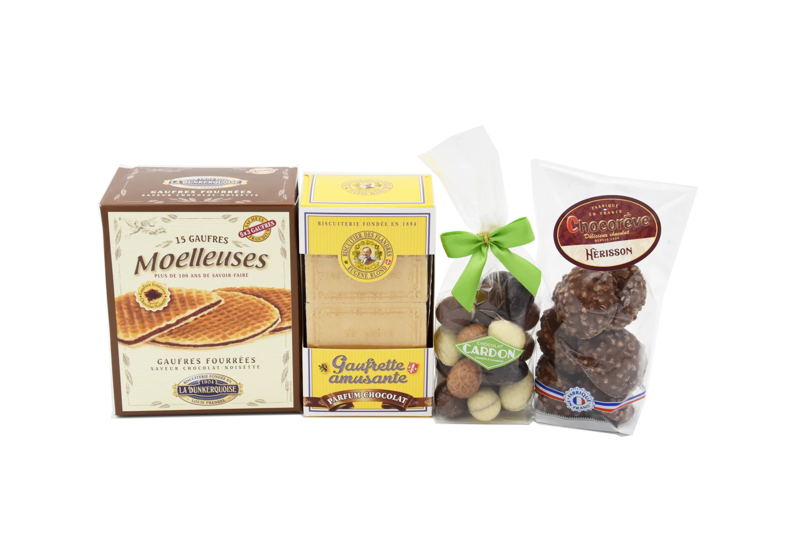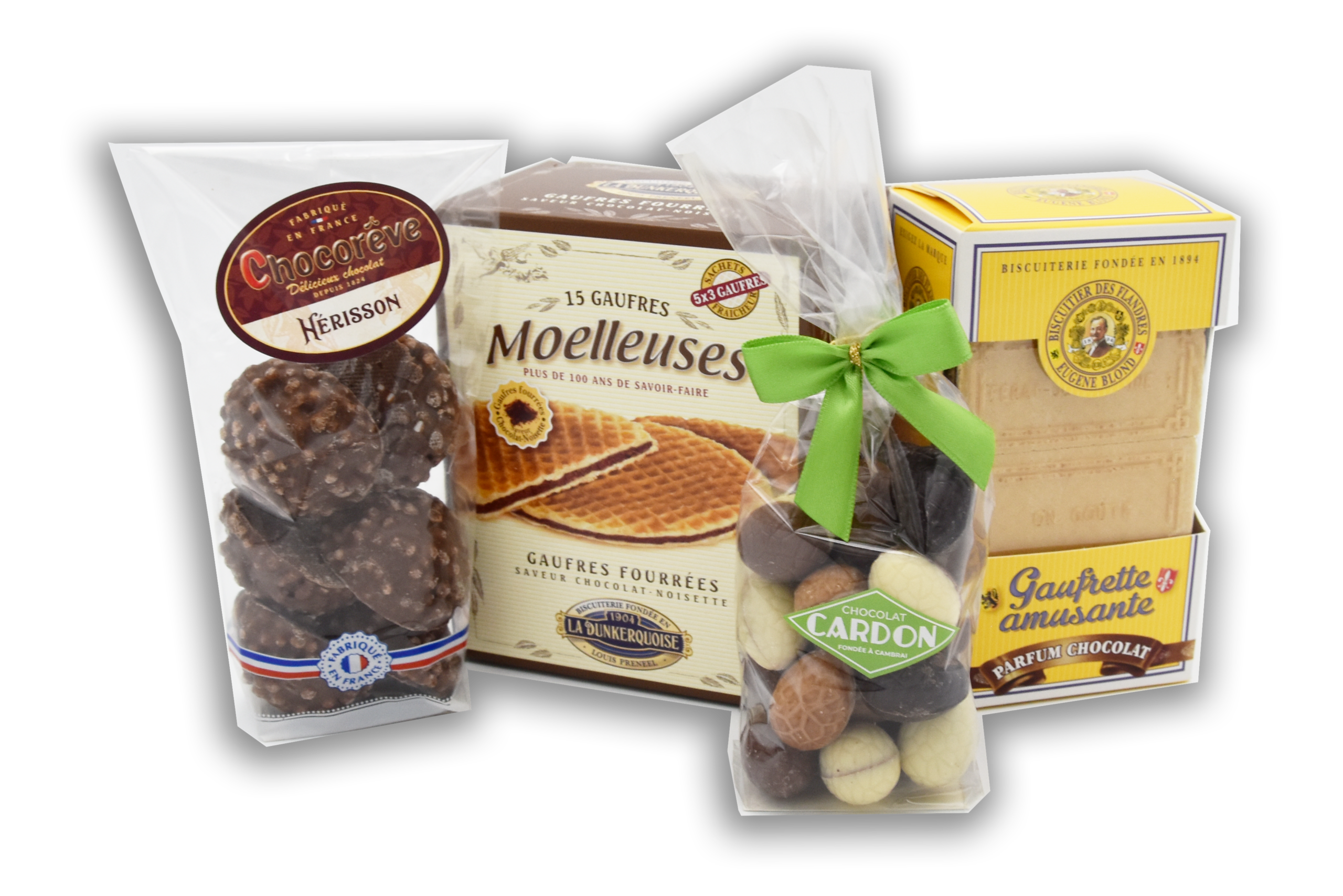 - Gaufrettes Amusantes Chocolat – De fines gaufrettes croustillantes enrobées de chocolat pour une touche croquante et légère.