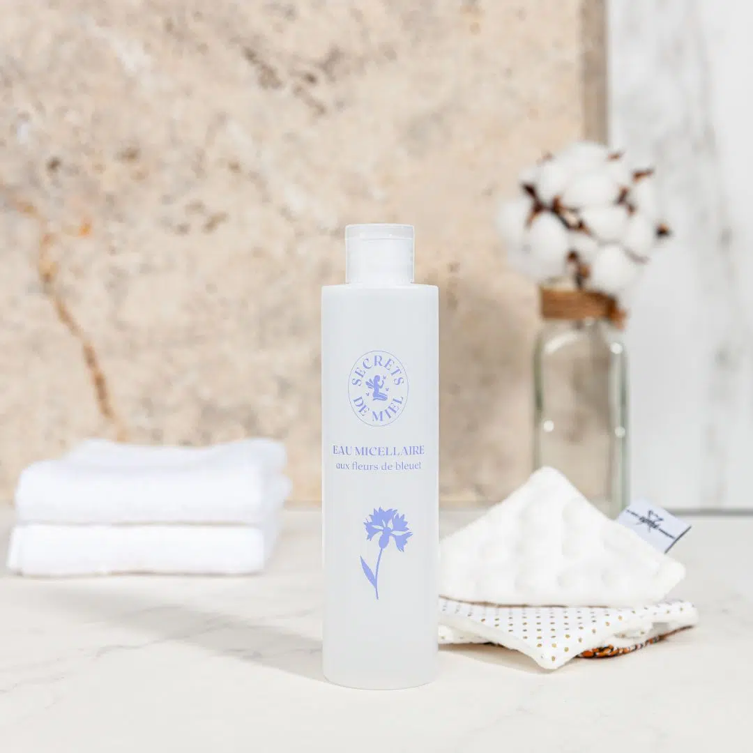 L’Eau Micellaire aux fleurs de Bleuet, Aloé Vera et Miel élimine en un seul geste maquillage et impuretés, des yeux, du visage et des lèvres. Sa formule douce et efficace, grâce aux micelles, capte et déloge les impuretés sans agresser la peau, offrant un nettoyage rapide, sans rinçage. Formule sans parfum.
