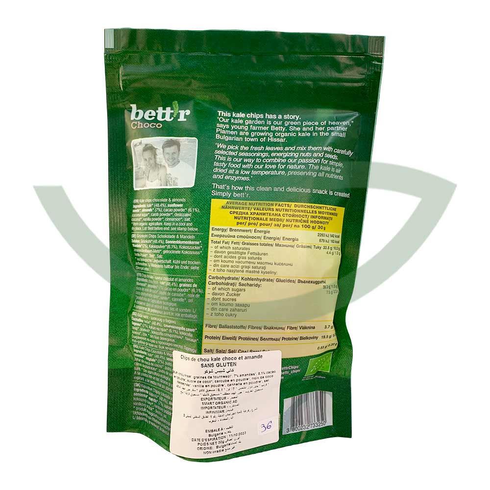 Caractéristiques des Kale chips au chocolat 30g de Bett’r