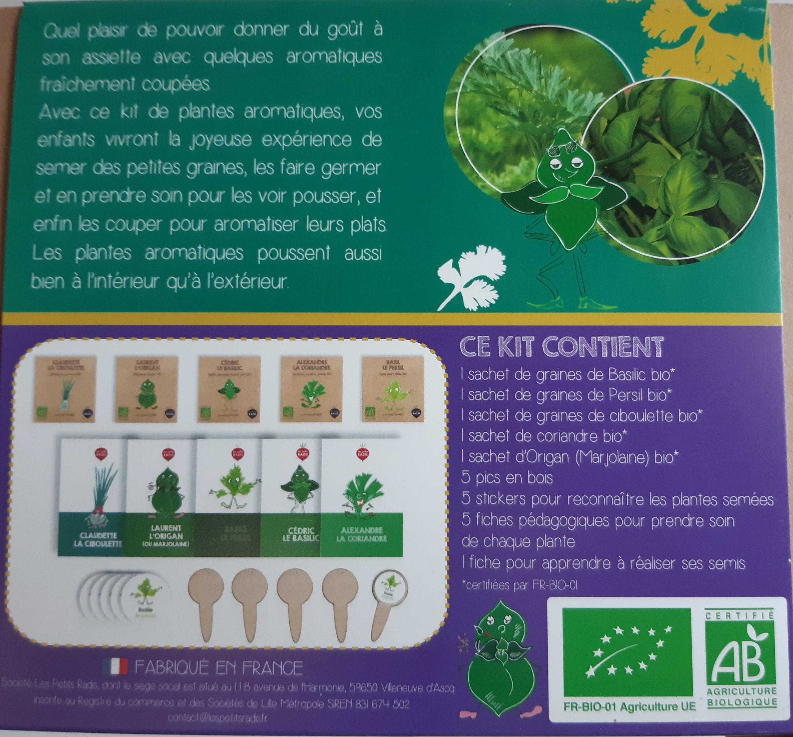 Promo ! Kit herbes aromatiques des enfants19,90 € Le prix initial était : 19,90 €.11,94 €Le prix actuel est : 11,94 €. quantité de Kit herbes aromatiques des enfants Ajouter au panier Catégorie : MOINS DE 20€ Description Avis (0) Description Ajouter à ma liste de souhaits Avis Il n’y a pas encore d’avis. Soyez le premier à laisser votre avis sur “Kit herbes aromatiques des enfants” Annuler la réponseVotre adresse e-mail ne sera pas publiée. Les champs obligatoires sont indiqués avec *Votre note * Évaluation... Parfait Bon Moyen Pas mal Très mauvais Votre avis *Nom * E-mail * Enregistrer mon nom, mon e-mail et mon site dans le navigateur pour mon prochain commentaire. Produits similaires Promo ! Kit bombes à graines 13,90 € Le prix initial était : 13,90 €.8,34 €Le prix actuel est : 8,34 €. Ajouter au panier Promo ! Cartes à planter – fête de fin d’année 5,50 € Le prix initial était : 5,50 €.3,30 €Le prix actuel est : 3,30 €. Choix des options Ce produit a plusieurs variations. Les options peuvent être choisies sur la page du produit Promo ! Pot en matière recyclée – local 15,00 € Le prix initial était : 15,00 €.9,00 €Le prix actuel est : 9,00 €. Choix des options Ce produit a plusieurs variations. Les options peuvent être choisies sur la page du produit Promo ! Filtre à thé pour gourde 260/500ml – bouchon infuseur 9,00 € Le prix initial était : 9,00 €.5,40 €Le prix actuel est : 5,40 €. Ajouter au panier