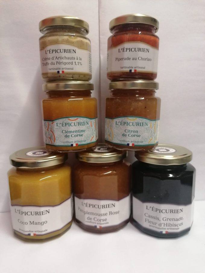 kiwi, sucre de canne, zestes d’orange confits, pectine de fruits, gousses de vanille Madagascar broyées