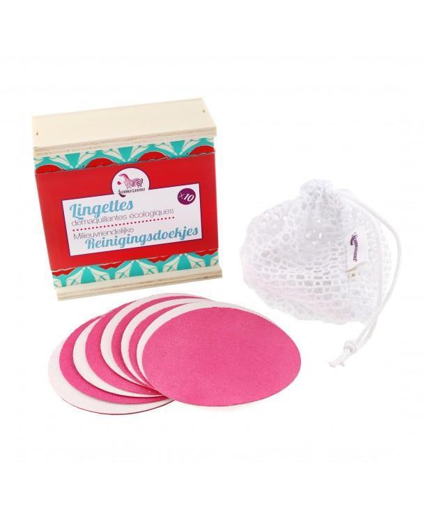 Lot de 10 lingettes démaquillantes lavables Lamazuna coffret bois + filet lavage