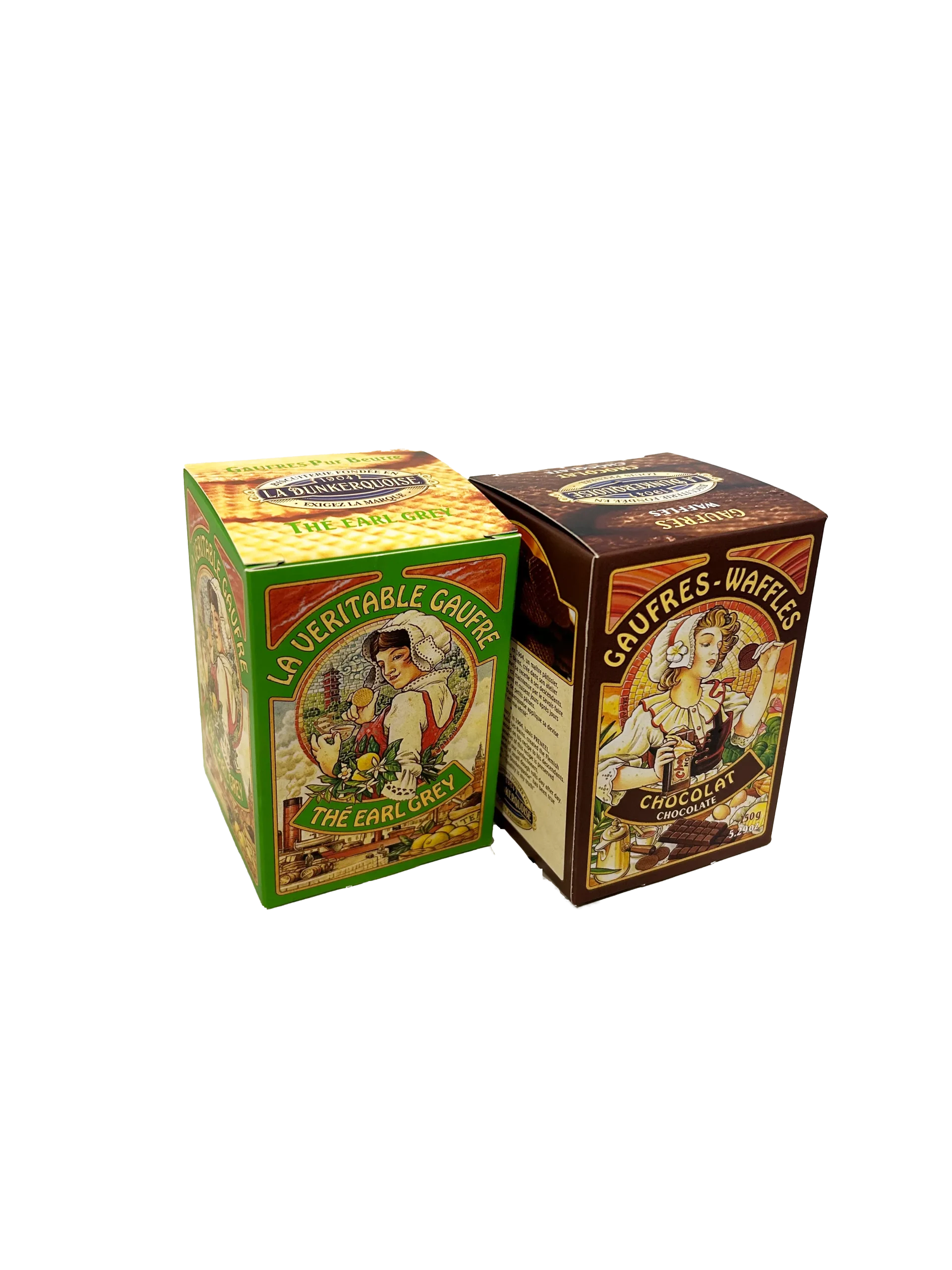 Découvrez le lot gourmand de Gaufres Fines au Chocolat et au Thé Earl Grey de la Biscuiterie La Dunkerquoise, un mariage parfait entre tradition et raffinement. Fabriquées dans le Nord de la France, ces gaufres croustillantes se déclinent en deux saveurs inégalables : la richesse du chocolat pur beurre et la délicatesse aromatique de l’Earl Grey à la bergamote.