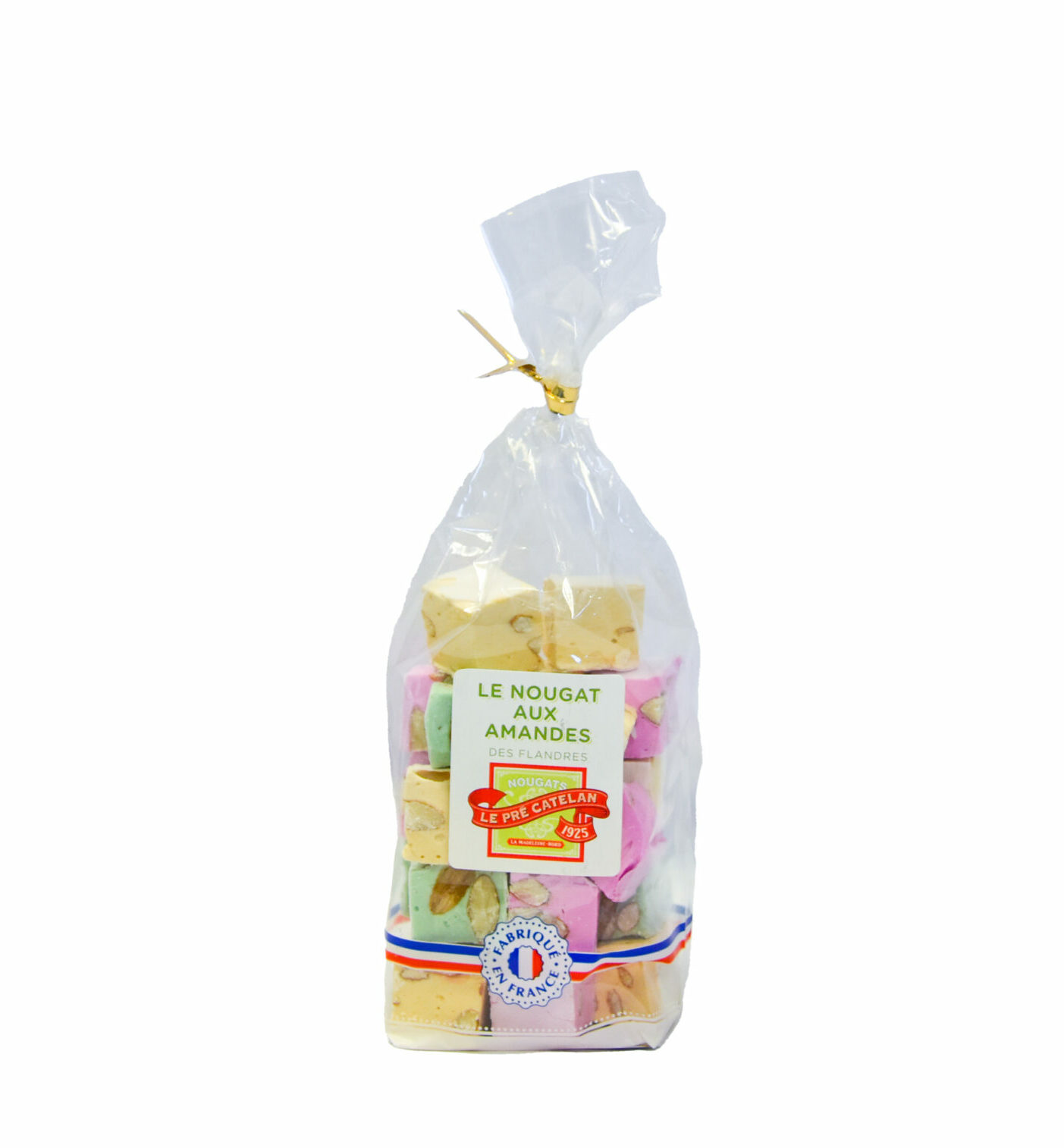 Sachet de nougats durs aux amandes. Saveur Vanille Framboise Pistache et Café.