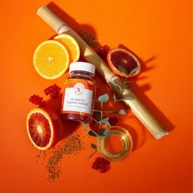 Ces délicieuses petites gommes molles sont formulées à base d’Acérola, concentré de Vitamine C et de Gelée Royale. La Vitamine C accroît l’absorption de fer, contribue à un métabolisme énergétique normal et au fonctionnement normal du système nerveux. Elle contribue également à la formation normale de collagène pour assurer la fonction normale des os, des cartilages et des dents.