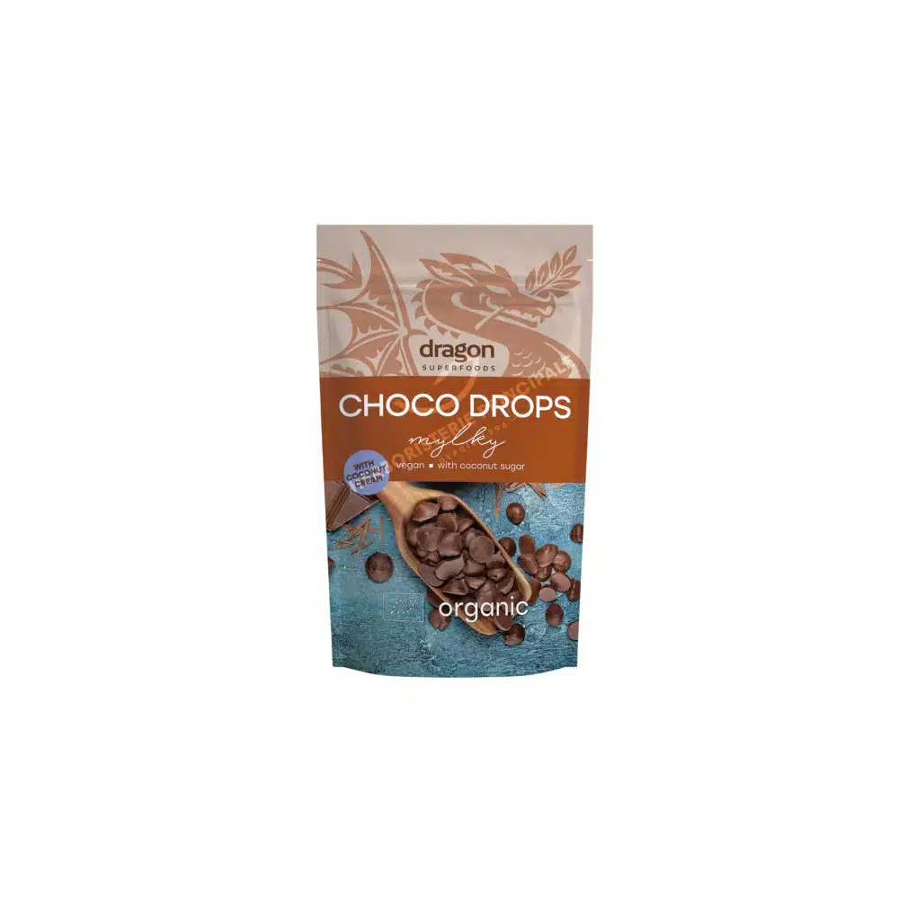 Les pépites de chocolat au lait bio Dragon Superfoods sont un aliment 100% biologique, végétalien et naturel au goût délicat et à l’arôme irrésistible. La crème de coco équilibre parfaitement le goût intense du cacao péruvien de haute qualité. Sucré avec du sucre de coco et sans produits laitiers. La touche chocolatée parfaite pour toute recette de dessert. Comme il ne contient pas de sucre, le chocolat végétalien est idéal pour les personnes souffrant de diabète ou d’intolérance au sucre. Il ne contient pas de sucre, n’affecte pas le taux de sucre dans le sang, mais le maintient dans la norme. Il améliore également le fonctionnement des cellules.