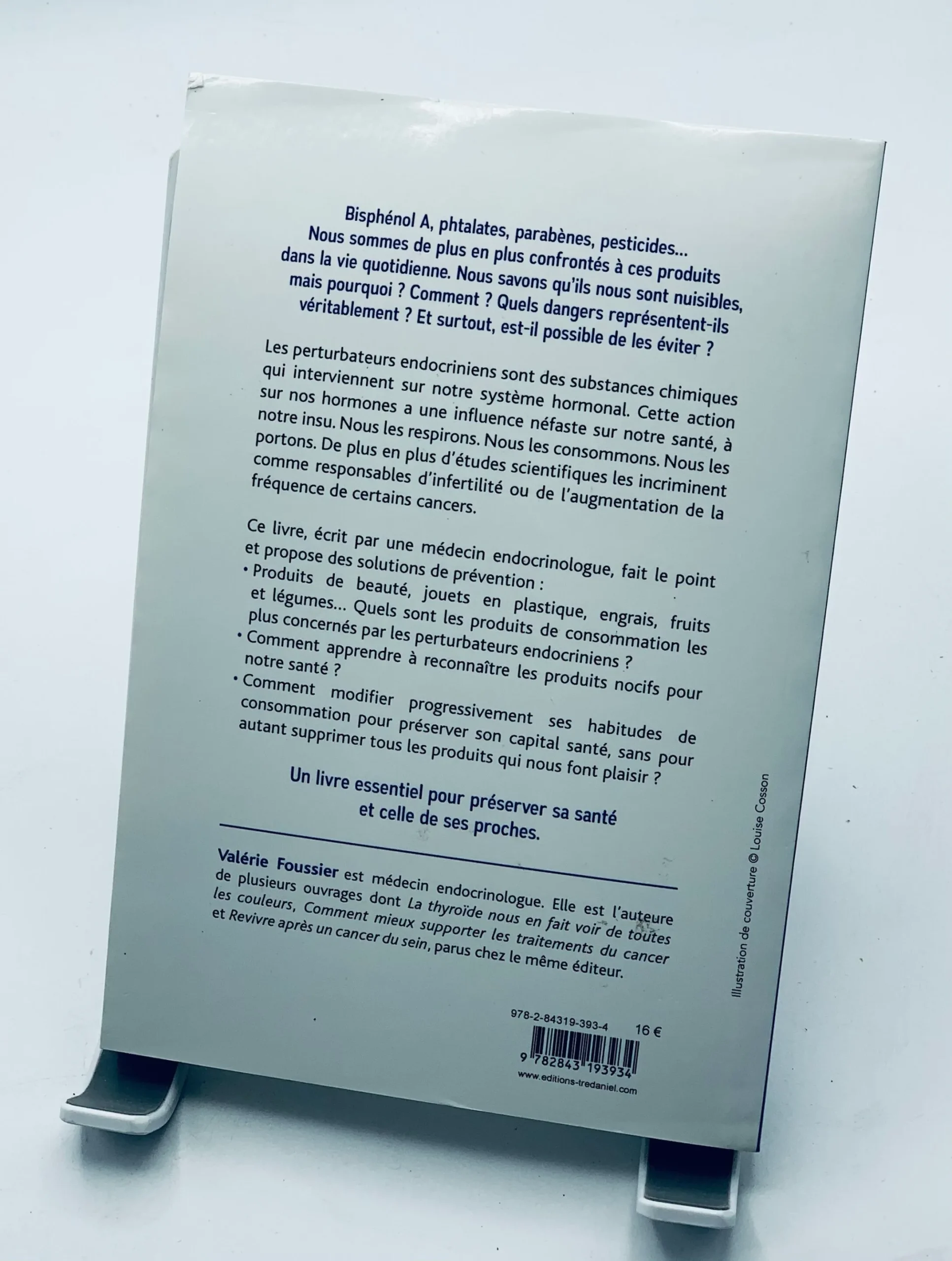 Bisphénol A, phtalates, parabènes, pesticides… Nous sommes de plus en plus confrontés à ces produits dans la vie quotidienne. Nous savons qu’ils nous sont nuisibles, mais pourquoi ? Comment ? Quels dangers représentent-ils véritablement ? Et surtout, est-il possible de les éviter ? Les perturbateurs endocriniens sont des substances chimiques qui interviennent sur notre système hormonal. Cette action sur nos hormones a une influence néfaste sur notre santé, à notre insu. Nous les respirons. Nous les consommons. Nous les portons. De plus en plus d’études scientifiques les incriminent comme responsables d’infertilité ou de l’augmentation de la fréquence de certains cancers. Ce livre, écrit par une médecin endocrinologue, fait le point et propose des solutions de prévention : Produits de beauté, jouets en plastique, engrais, fruits et légumes… Quels sont les produits de consommation les plus concernés par les perturbateurs endocriniens ? Comment apprendre à reconnaître les produits nocifs pour notre santé ? Comment modifier progressivement ses habitudes de consommation pour préserver son capital santé, sans pour autant supprimer tous les produits qui nous font plaisir ? Un livre essentiel pour préserver sa santé et celle de ses proches.