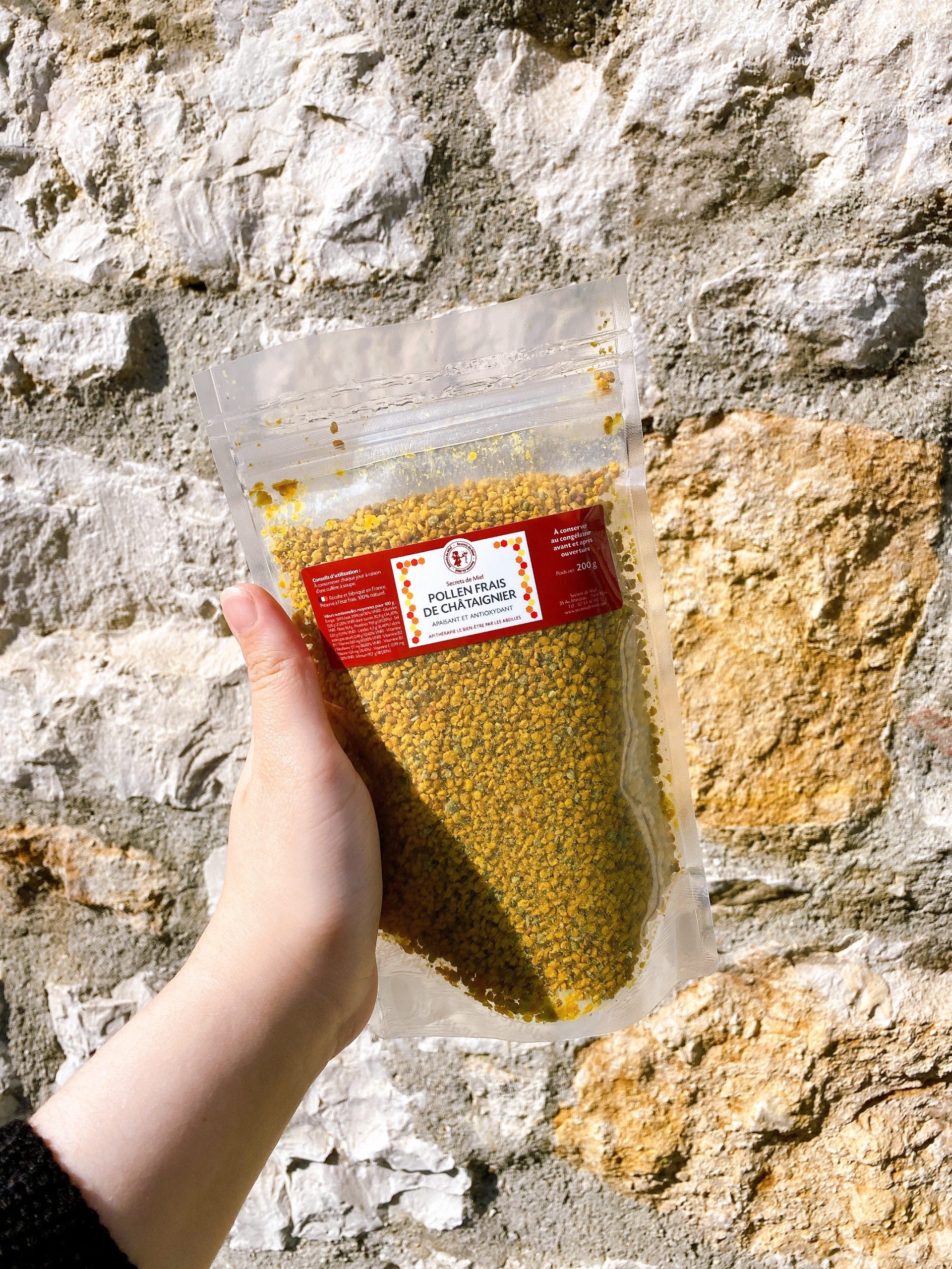 Notre Pollen de Châtaignier préservé à l’état frais grâce à un procédé breveté est extrêmement riche en Riboflavine (Vitamine B2), qui contribue à réduire la fatigue, à protéger les cellules contre le stress oxydatif, au fonctionnement normal du système nerveux et au maintien d’une vision et d’une peau normales. Il est également très riche en Thiamine (Vitamine B1), qui contribue à une fonction cardiaque et du système nerveux normales.