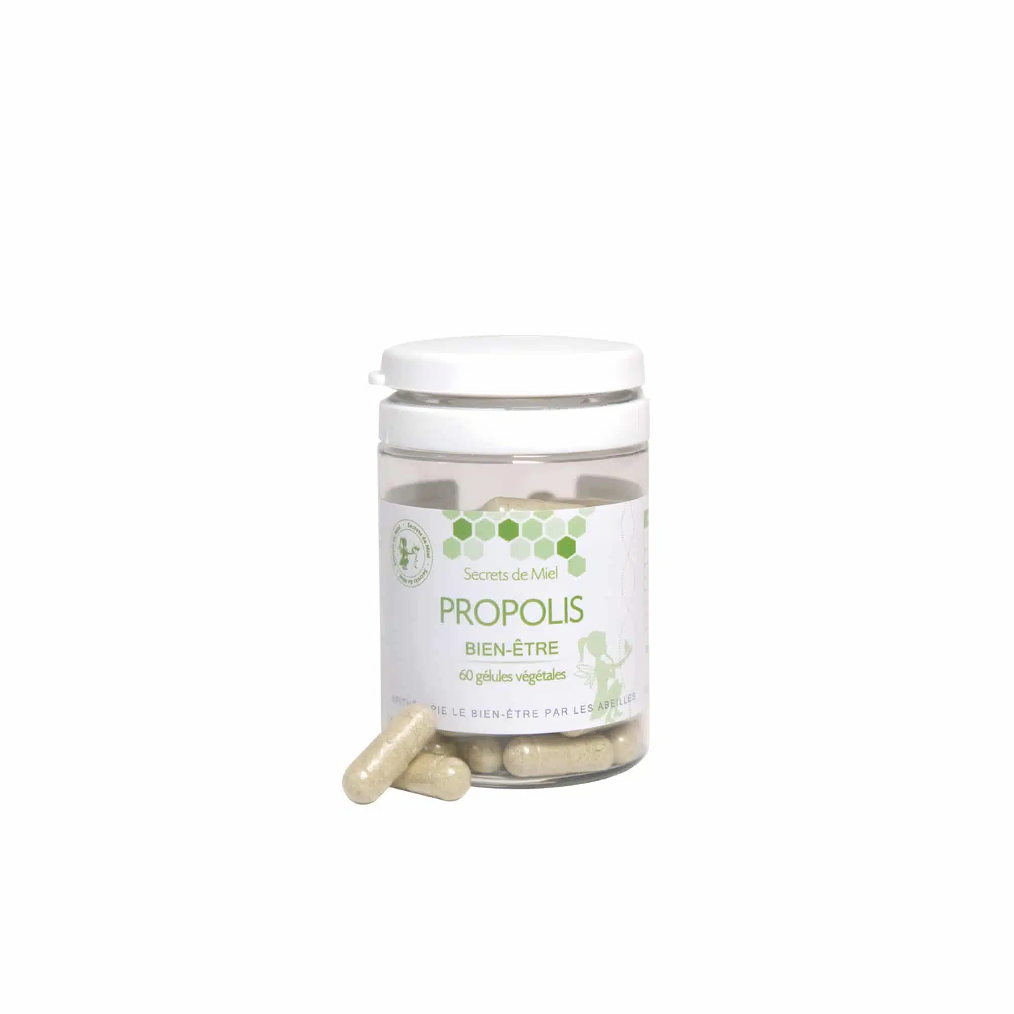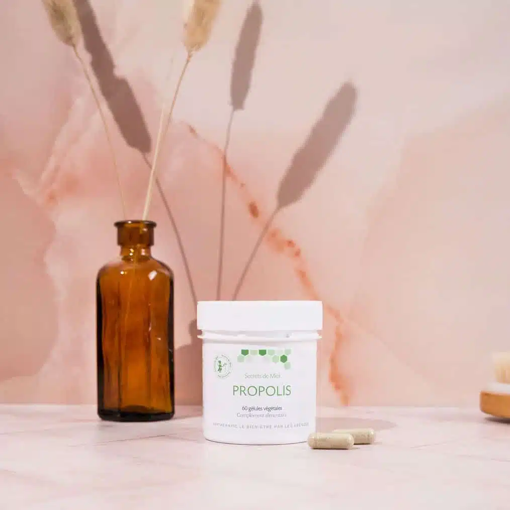 Complément alimentaire en gélules à base de propolis. La Propolis, véritable bouclier de la ruche, protège votre organisme des agressions extérieures. Alliée à l’eucalyptus, qui apaise vos voies respiratoires, gorge et cordes vocales pour un bien-être au quotidien.