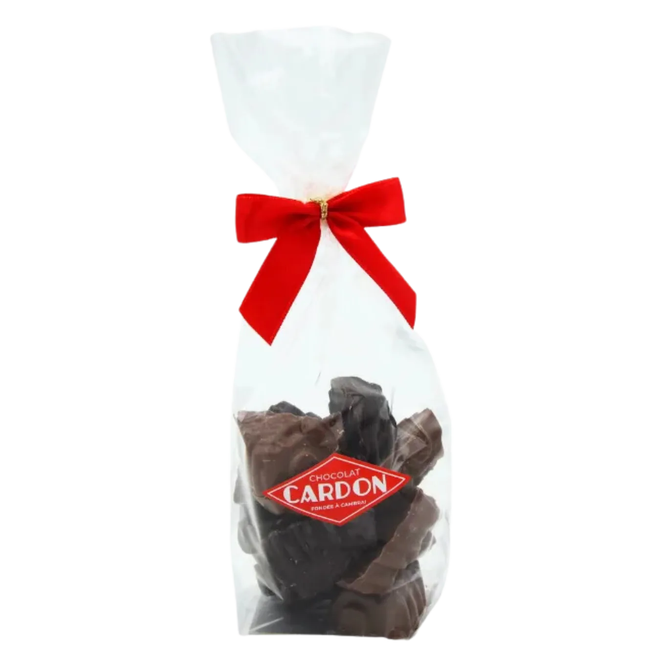 Plongez dans la magie des fêtes avec notre sachet de sapins de Noël en chocolat au lait et noir, délicieusement fourrés d’un praliné onctueux aux noisettes.