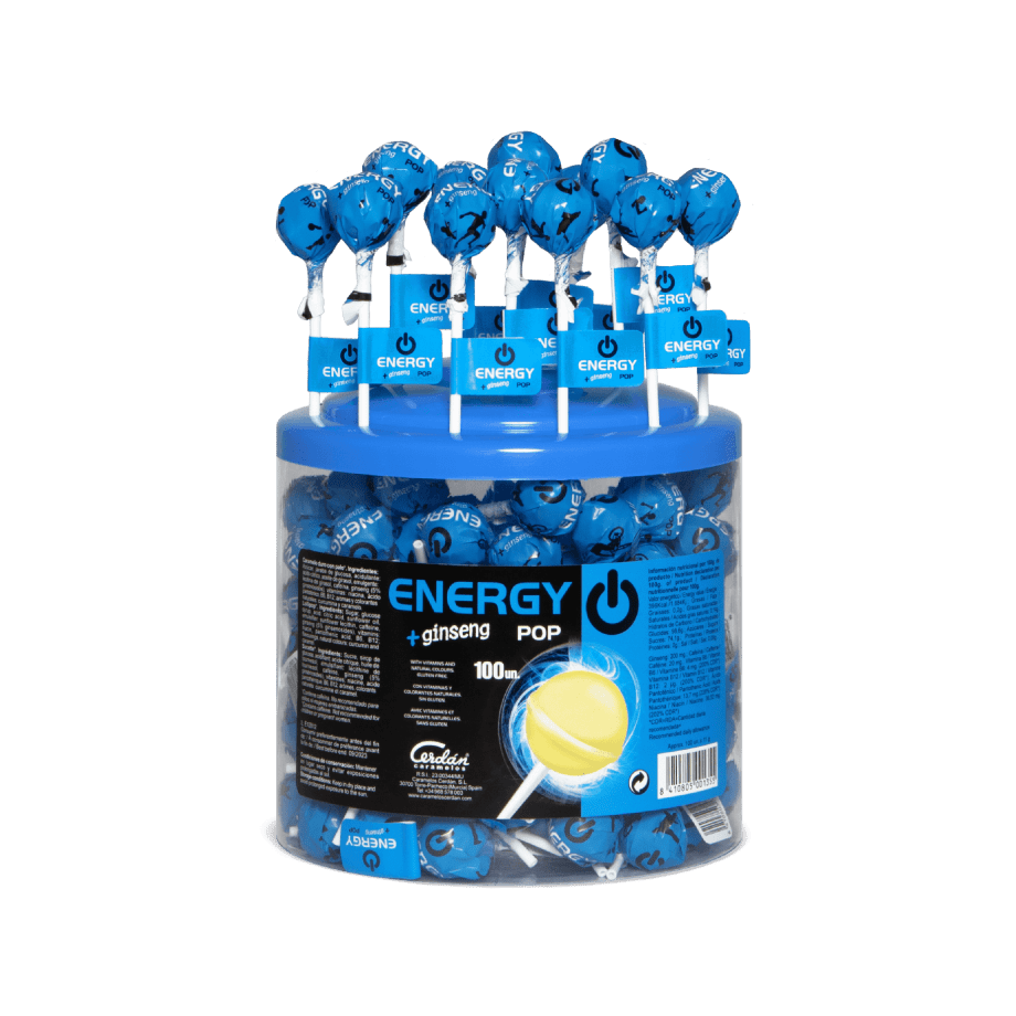 Pot de 100 sucettes Energy Pop (Style Red Bull).