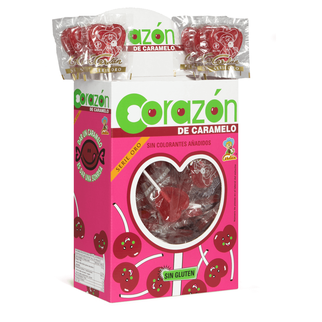 Boite de 100 sucettes grands coeurs Corazon Cerdan.
